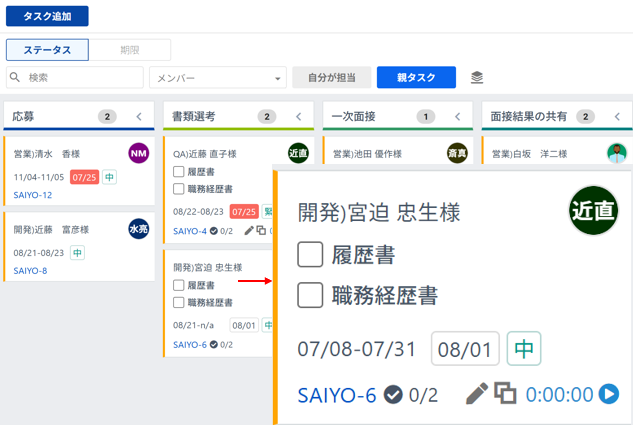 ボード上で期間やタスクID等、表示される情報が追加されました。 詳細を表示しなくても簡単に状況を確認可能です。
